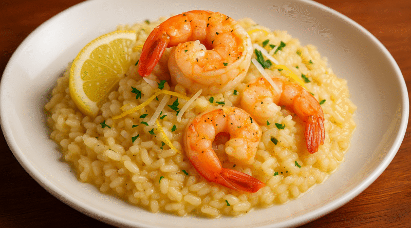 Ah, o risoto… aquele prato que carrega história e tradição! Antigamente, era feito lentamente no fogo, com colher de pau e paciência — e é justamente isso que o torna tão especial. Nesta versão, o toque cítrico do limão siciliano e a suavidade do camarão trazem elegância e frescor. É o tipo de prato que impressiona qualquer convidado e perfuma a casa inteira.